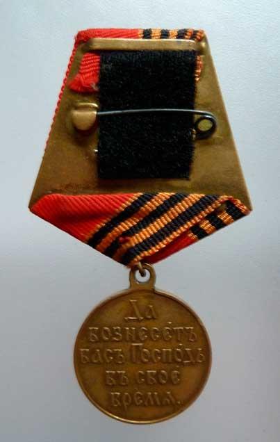 Pamětní medaile na rusko-japonskou válku 1904 - 1905, OK.269, bronz 28 mm s původním ouškem a pozdější stuhou na mosazné kolodce