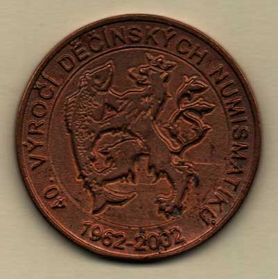 Schejbal a Kment - 30.výročí děčínských numism. 2002 - děčínský zámek, opis / městský znak, opis, Nesign., litý bronz 32 mm, údajně pouze 120 ks R!