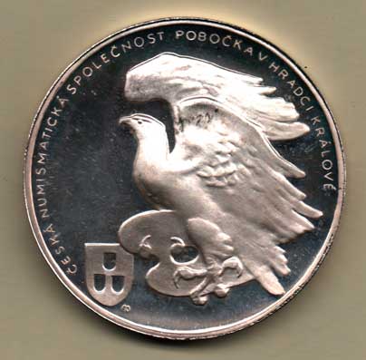 Knobloch - Petr Brandl (1668-1735) 1988 - poprsí mírně zprava, vročení, opis / holubice na paletě, znak, opis, Sign., postříbřený bronz 42 mm, FM.12