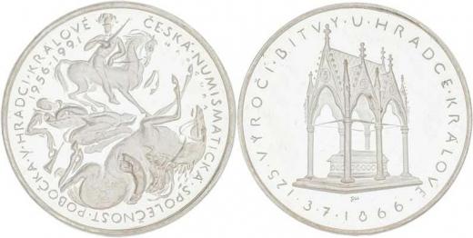 Harcuba - 125 let bitvy u Hradce Králové 1991 - památník bitvy, opis / bitevní scéna, opis, Sign., Punc., Ag900, 42.739g, FM.16 (pouze 50 ks) RR!