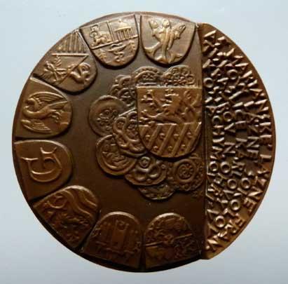 Kolářský - 10 let pobočky 1979 - portrét V.Klímy zpředu, mince, nápis/ mince a znaky pob. měst, nápis, Sign., patin.bronz 60mm, 174.435g, BK.7 (90ks) R!