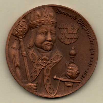 Poldaufová a Novotný - Bruno ze Schaumburku 1981 - poprsí zpředu s berlou a mečem, znak a opis / znak, město, nápis, Sign., pat.bronz 42mm, FM.9A (cca 10ks)