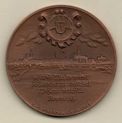 Poldaufová a Novotný - Bruno ze Schaumburku 1981 - poprsí zpředu s berlou a mečem, znak a opis / znak, město, nápis, Sign., pat.bronz 42mm, FM.9A (cca 10ks)