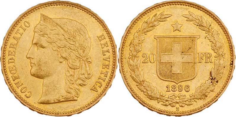 20 Frank 1896 B, KM.31.3, 6.449g, nep.hr., nep.rysky, téměř