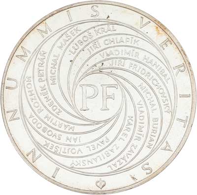 PF 2004 - renesanční kachel se znakem Jakuba Krčína, opis / v paprscích jména vydavetelů, velké "PF" a opis, Sign., Ag925, 30mm, 14.508g, patina, etue R!