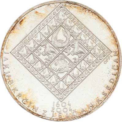 PF 2004 - renesanční kachel se znakem Jakuba Krčína, opis / v paprscích jména vydavetelů, velké "PF" a opis, Sign., Ag925, 30mm, 14.508g, patina, etue R!