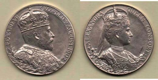 Edward VII. a Alexandra - korunovační medaile 1902 - portrét krále zprava, opis / portrét královny zprava, opis, Nesign., Nepunc., Ag(?), 31mm, 12.793g, téměř