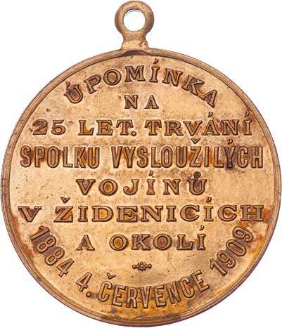 Brno - Židenice 1909 - 25 let trvání spolku 4.7., Nesign., zlac.bronz 29 mm s původním raženým ouškem, Indra.str.51