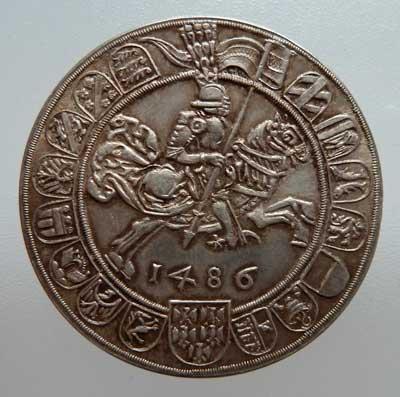 Guldiner 1486/1953 - značená novoražba nejstaršího rakouského tolaru, 31.943g, krásná patina