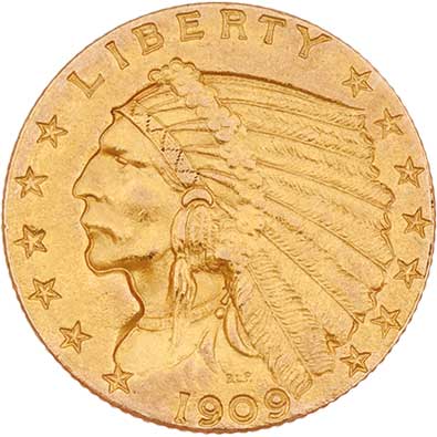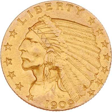 2.5 Dolar 1909 - hlava indiána, KM.128, 4.174g, nep.hr., nep.rysky