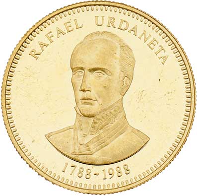 5000 Bolivares 1888 - Rafael Urdanea, Y.62 (Au900, pouze 25.000 ks), 15.546g, nep.hr., nep.rysky