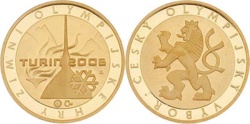 Kozák - Český olympijský výbor - ZOH Torino 2006 - český lev, opis / emblém her, nápis a opis, Sign., Au999, 22mm, 7.793g, kapsle, etue, certifikát (120ks)