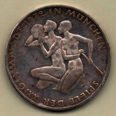 10 Marka 1972 F - LOH Mnichov - sportovci, KM.132, dr.hr., dr.rysky, patina