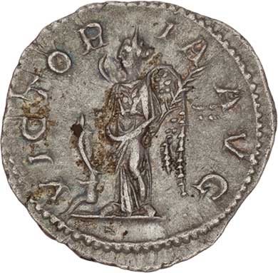 AR Denár, Rv:"VICTORIA.AVG.", stojící Victoria, podobný jako S.2136, RIC.257 - mincovna Řím - ražba z let 231 - 235