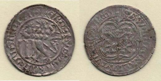 Groš štít. (1451-56), Freiberg-Monhaupt, Krug.1036/1, 2.452g, dr.vady materiálu, nep.nedor., nep.dvojráz, pěkná patina