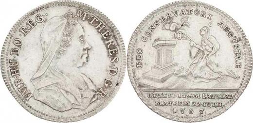 Wideman - menší jeton na uzdravení od neštovic 1767 - portrét, opis/ císařovna klečící před oltářem, opis a nápis, Ag 21mm, 1.913g, ČS.1368, M.1979, nep.rysky