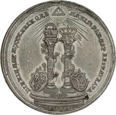 Reich - cínová medaile na Těšínský mír 1779 - poprsí Josefa II. a Friedricha II., věnec, nápis/ korunované sloupy, znaky, opis, 43mm, ČS.1371, pův.měď.čep, pat.