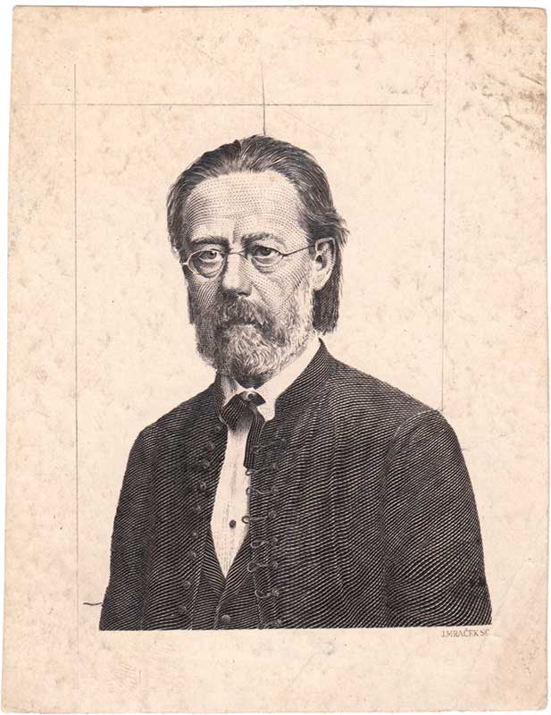 5000 Koruna 1945 - pův. autorský otisk původní rytiny portrétu Bedřicha Smetany, hlubotisk černou barvou, Sign.J.Mráček, ohnutý roh, nep.ušpiněný papír RR!
