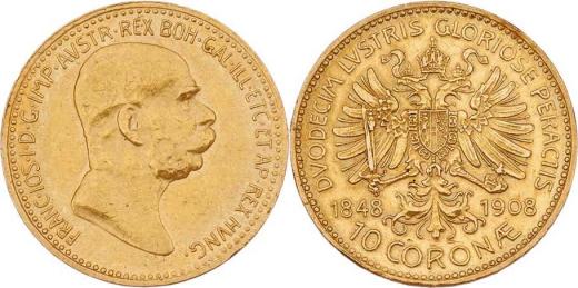10 Koruna 1908 - jubilejní, 3.378g, dr.hr., nep.rysky