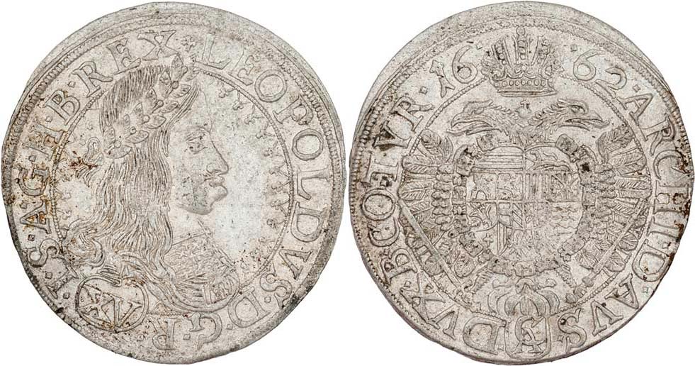 XV Krejcar 1662, Vídeň-Cetto, Nech.1904, M-A.161, opis aversu "LEOPOLDVS.D.G.R.(XV).I.S.A.G.H.B.REX.", 5.971g, nep.rysky, pěkná patina, téměř