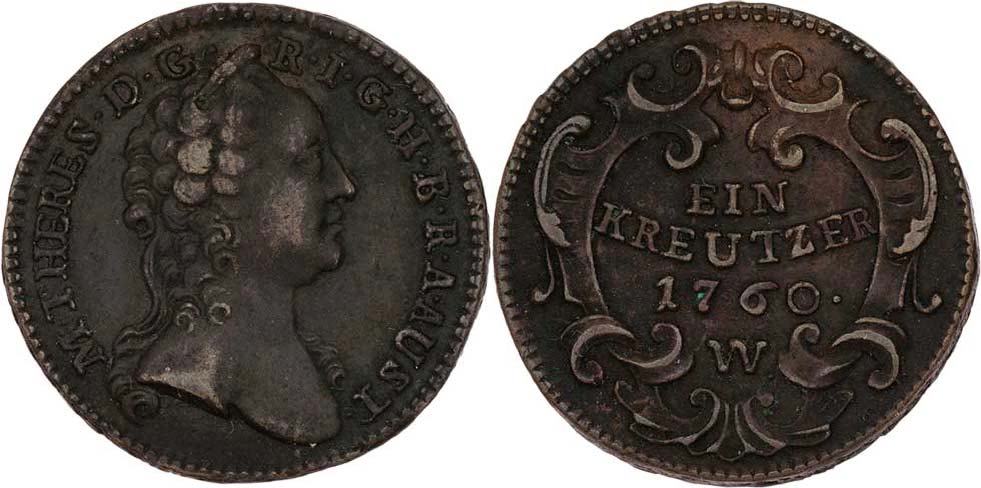 Cu Krejcar 1760 W, Vídeň, M-A.261, N.41, 11.875g, krásná patina