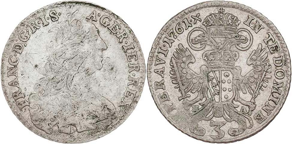 3 Krejcar 1761 H-A, Hall, N.14, M-A.262, 1.711g, nep.nedor., dr.hr., dr.rysky, pěkná patina R!