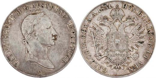 Tolar 1831 A - stuhy přilehlé, 28.013g, hr., dr.rysky, mírně just., pěkná patina R!