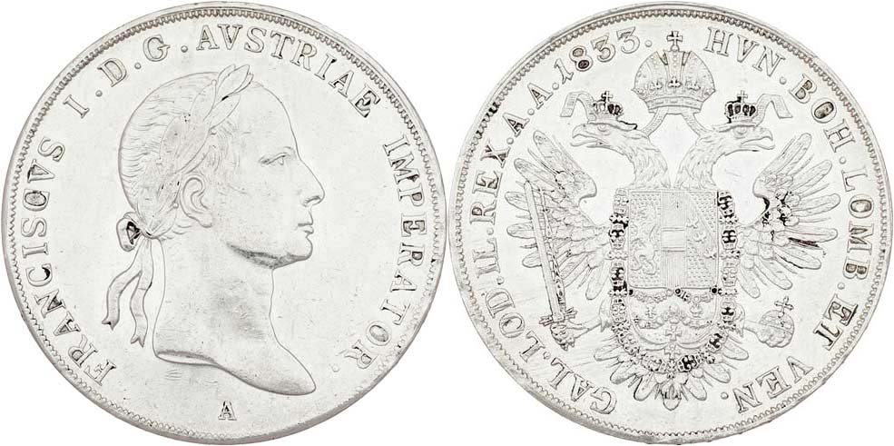 Tolar 1832 A - nápis na hraně "FVNDAMENTVM...", 28.040g, dr.hr., dr.rysky
