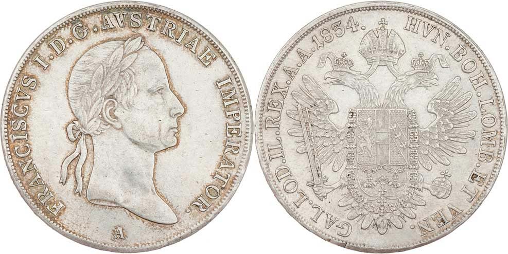 Tolar 1834 A, 27.977g, nep.hr., nep.rysky, pěkná patina