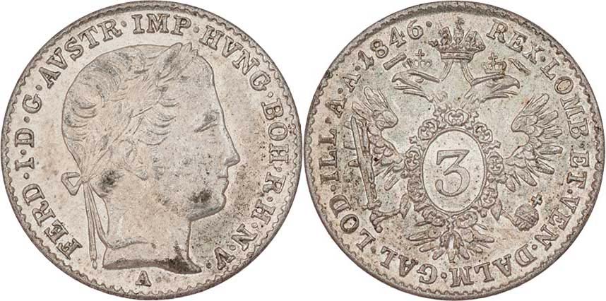 3 Krejcar 1846 A, 1.679g, nep.rysky, téměř