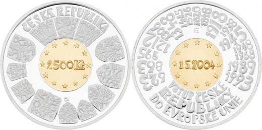 2500 Koruna 2004 - vstup do EU (bimetal 7.78g Au + 31.10g Ag, pouze 10.000 ks), kapsle, etue, karta