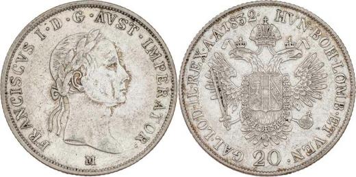 20 Krejcar 1832 M, P.17, 6.645g, nep.hr., nep.rysky, pěkná patina R!