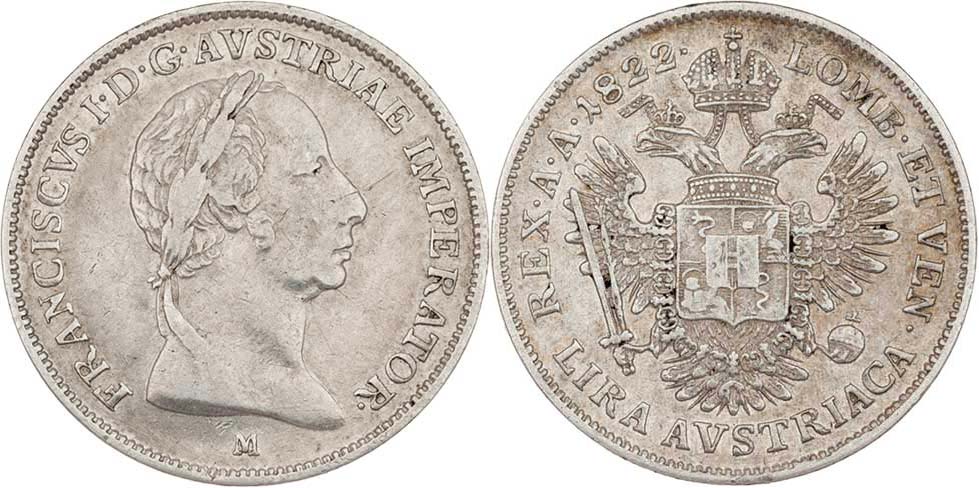 Lira 1822 M, Milán, M-A.318, P.26, 4.288g, nep.hr., nep.rysky R!