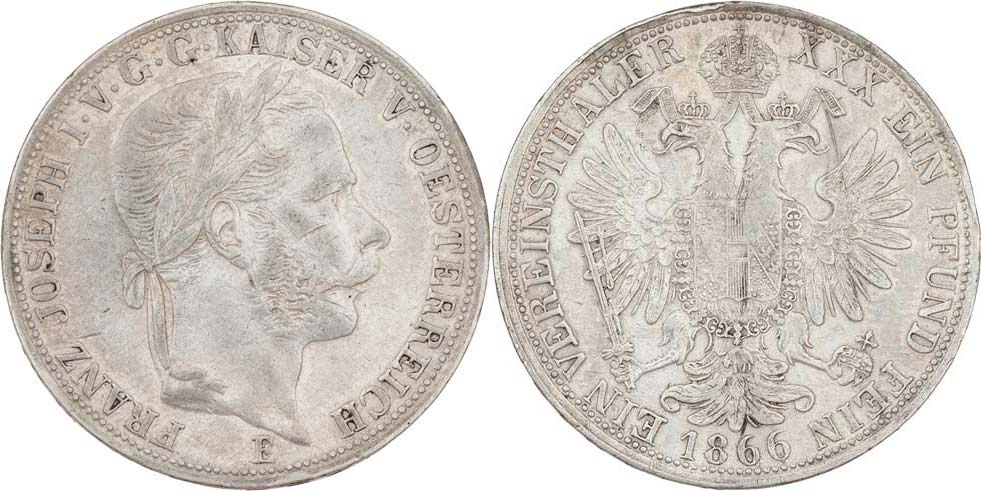 Tolar spolkový 1866 E, 18.479g, dr.hr., škr., patina