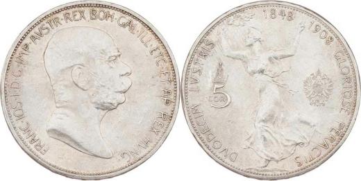 5 Koruna 1908 - jubilejní, 23.960g, nep.hr., dr.rysky