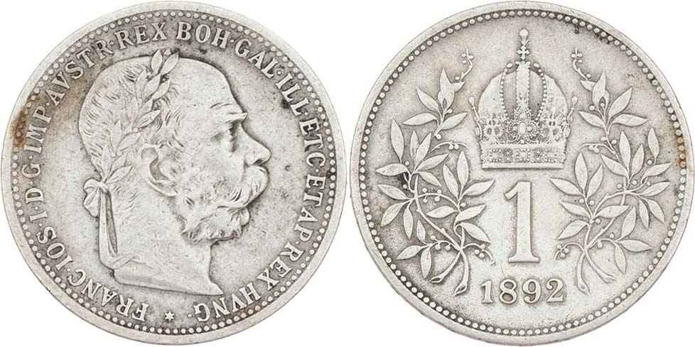 Koruna 1892, 4.950g, nep.rysky, pěkná patina RR!