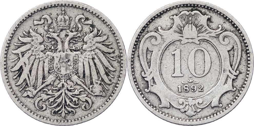 10 Haléř 1892, 2.904g, nep.hr., dr.rysky, patina RR!