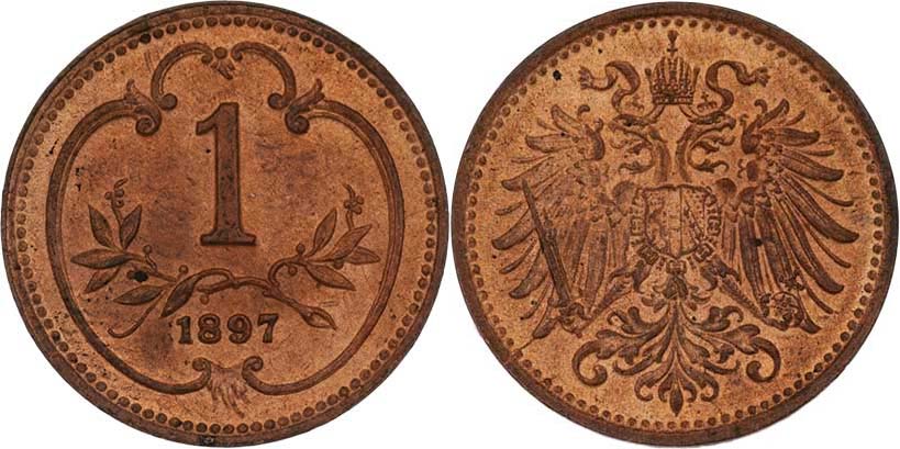 Haléř 1897, 1.691g, mimořádná zachovalost