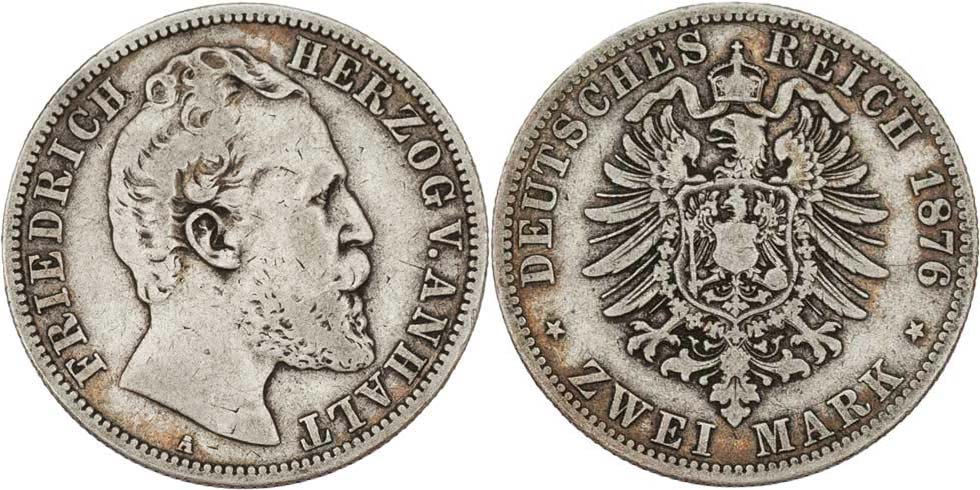 2 Marka 1876 A, KM.22 (200.000 ks), 10.939g, dr.hr., dr.rysky, patina R!