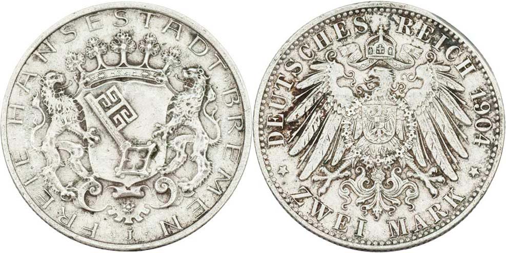 2 Marka 1904 J, KM.250 (100.000 ks), 11.068g, na hraně zkouška kovu, dr.rysky, skvrny, patina R!