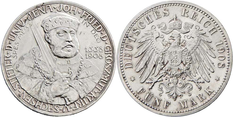 5 Marka 1908 - Universita Jena, Y.175 (pouze 40.000 ks), 27.733g, nep.hr., nep.rysky, téměř R!