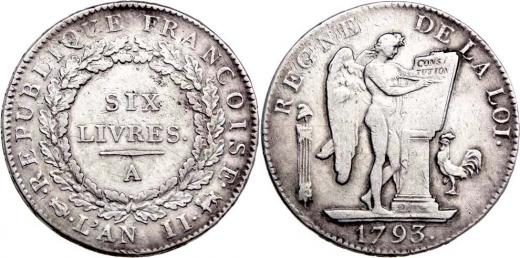 6 Livres, rok 2 = 1793 A, Paříž, KM.624.1, 29.167g, dr.vady materiálu, dr.hr., dr.rysky