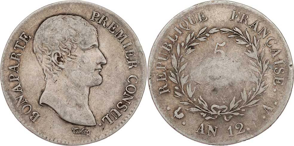5 Frank, rok 12 (= 1804) A, Paříž, KM.659.1, 24.756g, nedor., hr., rysky, patina