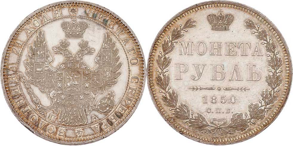 Rubl 1850 SPB-PA, Petrohrad, Cr.168.1, 20.800g, mimořádná zachovalost - tzv." prvoražba", patina R!