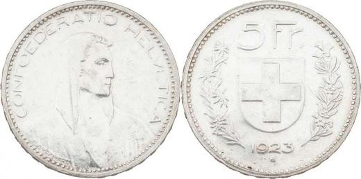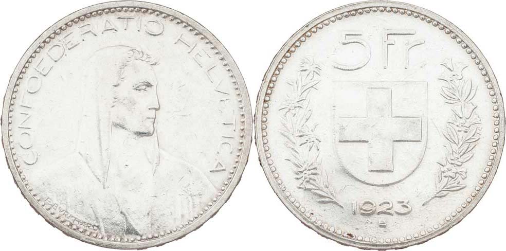 5 Frank 1923 B, KM.37, 24.908g, nep.hr., vl.rysky