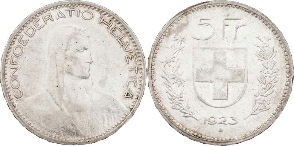 5 Frank 1923 B, KM.37, 24.998g, hr., dr.rysky, patina