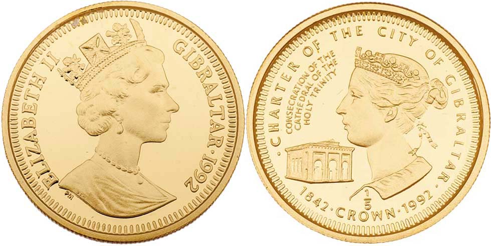 1/5 Crown 1992 - 150 let katedrály Svaté Tojice, KM.neuvádí (typ jako KM.178, Au999), 6.268g, kapsle
