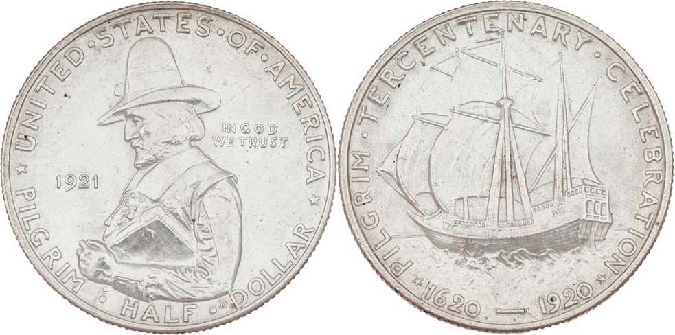 1/2 Dolar 1921 - Pilgrim, KM.147.2 (pouze 20.053 ks), 12.522g, nep.hr., nep.rysky, téměř R!