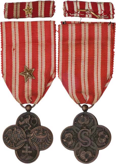 Československý válečný kříž 1914-1918, VM.5-III, III.vydání (1945 - 1946), stuha s hvězdičkou, malá stužka s hvězdičkou
