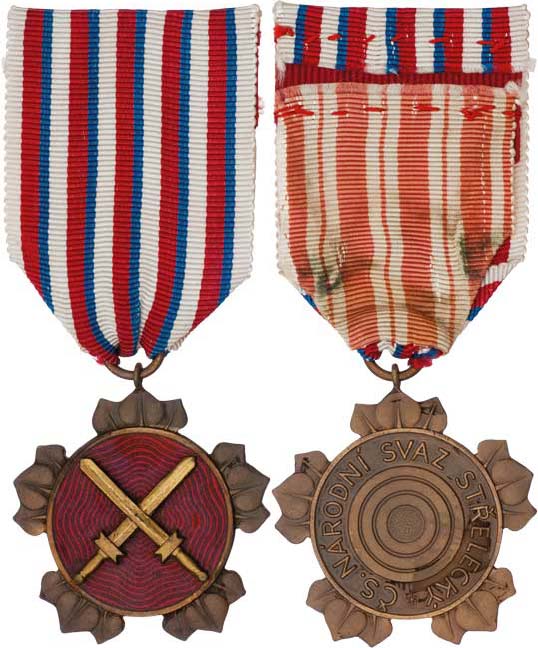 Čsl.národní svaz střelecký - Záslužný řád - 4.stupeň, VM.83d, zkrácená a nastavená stuha